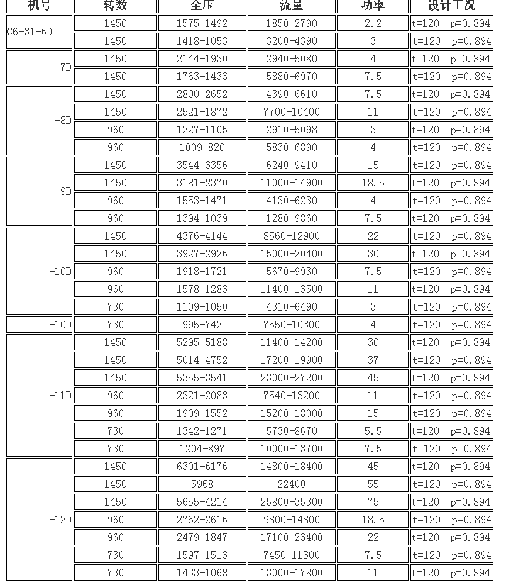 結(jié)構(gòu)特點(diǎn):1)高效工況范圍寬。C6-31-1No.6-12D、C6-51-1No.7-20D共21種規(guī)格。由于風(fēng)機(jī)機(jī)號排列密,容易選到高效區(qū),并比原老產(chǎn)品性能范圍擴(kuò)大二倍。