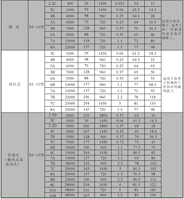 型:FDZ為防腐型軸流通風(fēng)機,用于輸送有腐蝕性的氣體;BDZ為防爆型軸流通風(fēng)機,用于輸送易燃易爆的氣體。
